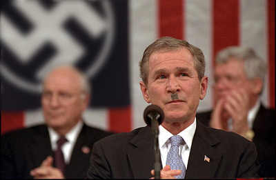 Wow, scary. An Onion article from January 18 2001. It's frighteningly accurate. So go to whitehouse.org, and read the hatemail. It's wonderful. You know what's scary, though? Not that a lot of people are stupid enough to think it's real. That even happens to Standonguard.com. No, the scary part is that some people read the site, think that it's real, and still support it. americans are freaky. 'specially the religious ones.