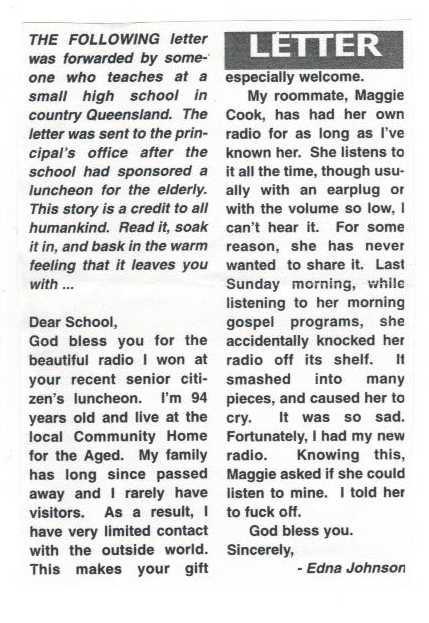 People write in to say that I'm too cynical. Yeah, they would say that. Typical.